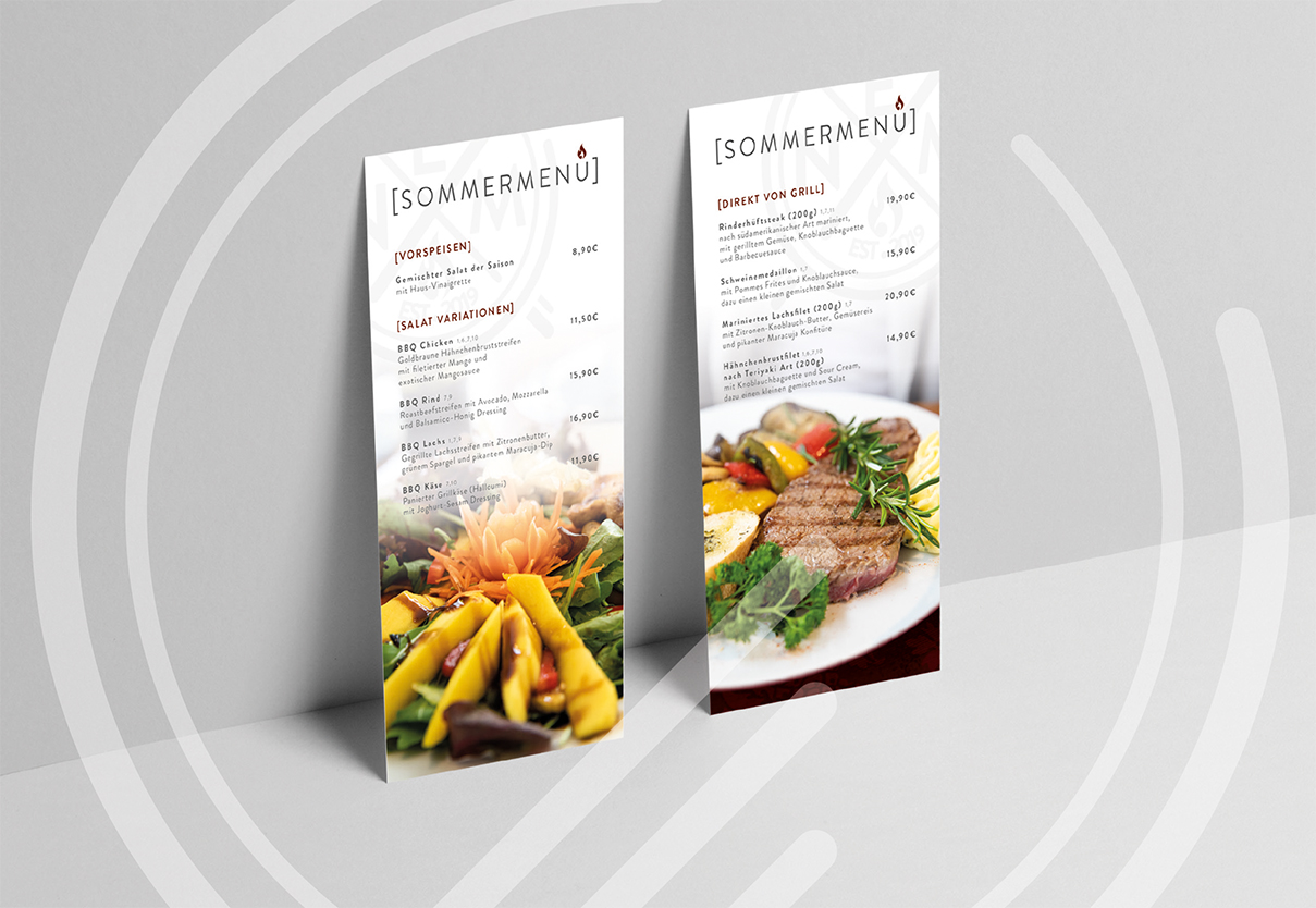 Für die saisonalen a la Carte-Gerichte, die nur mit den besten und größtenteils aus der Region verwendeten Zutaten zubereitet werden, gestalteten wir eine Speisekarte, in der sich das neue Gestaltungskonzept ebenfalls widerspiegelt. Zum neuen Corporate Design wurde auch ein Flyer und Visitenkarten von uns designed. Zusätzlich zum Redesign wurde der Social Media Auftritt von GRILLHAUS [BARBECUE & WINE] erweitert. Mit einer Social Media Strategie, inklusive Postingplan, übernahmen wir den Aufbau und die Pflege der Social Media Kanäle und eröffneten dabei, zu dem schon bestehenden Facebook Account, eine Instagram Seite. Das Posting orientiert sich ebenfalls an den Komponenten Genuss und Geselligkeit und spiegelt die Hochwertigkeit der regionalen Produkte erneut wider. Neben den üblichen Grillgerichten werden treffend das Menü und die Sommerspeisekarte, sowie Aktionen, wie eine Gutscheinverlosung mit dem Motto „WIN & GRILL“, beworben.