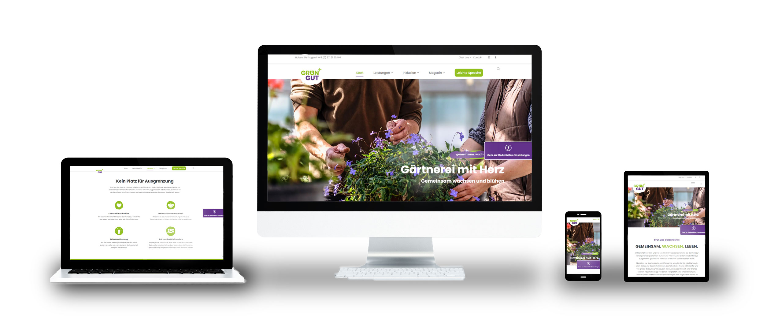 Grün und Gut hat uns kontaktiert, um ein neues Branding für ihre inklusive Gärtnerei zu gestalten. Im Zuge dieses Projekts haben wir ein zeitgemäßes Logo, eine benutzerfreundliche Website sowie überarbeitetes Briefpapier, Visitenkarten und Außenwerbung entwickelt. Fokus lag darauf das inklusive und nachhaltige Konzept von Grün und Gut zeitgemäß darzustellen.