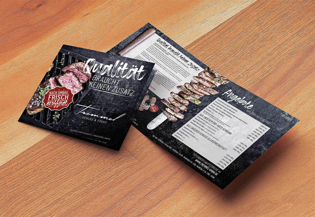 Das Logo blieb, aber Bildsprache, Wording und Konzept wurde neu gebrandet und bekam eine modernes Äußeres. In dem neuen Corporate Design spiegelt sich der Qualitätsanspruch der Marke Tremmel wider, die neben der neu umgebauten Genusswelt in Tiefenbach einen eigenen Catering-Service mit Event-Location (Schlossinsel Altfraunhofen) umfasst. Jeweils zur Frühjahrs- und Herbstdult gibt es außerdem Sophie’s Alm eine kleine aber exklusive Genuss- und Party Hüttn aus Vollholz, die mit bestem Catering und prominenten Hüttn-Acts seit mittlerweile einigen Jahren überzeugt.